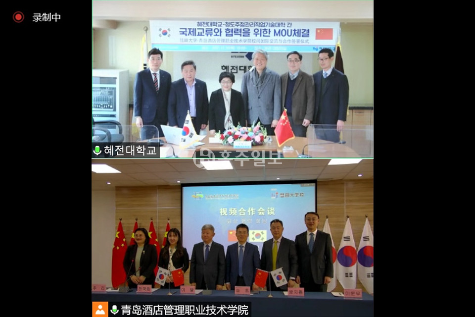 혜전대학교(이혜숙 총장)는 지난달 30일 관광·서비스 산업의 발전과 대학 간 국제교류 활성화를 위해 중국 청도호텔관리직업기술대학교와 업무협약(MOU)을 체결했다.<사진>