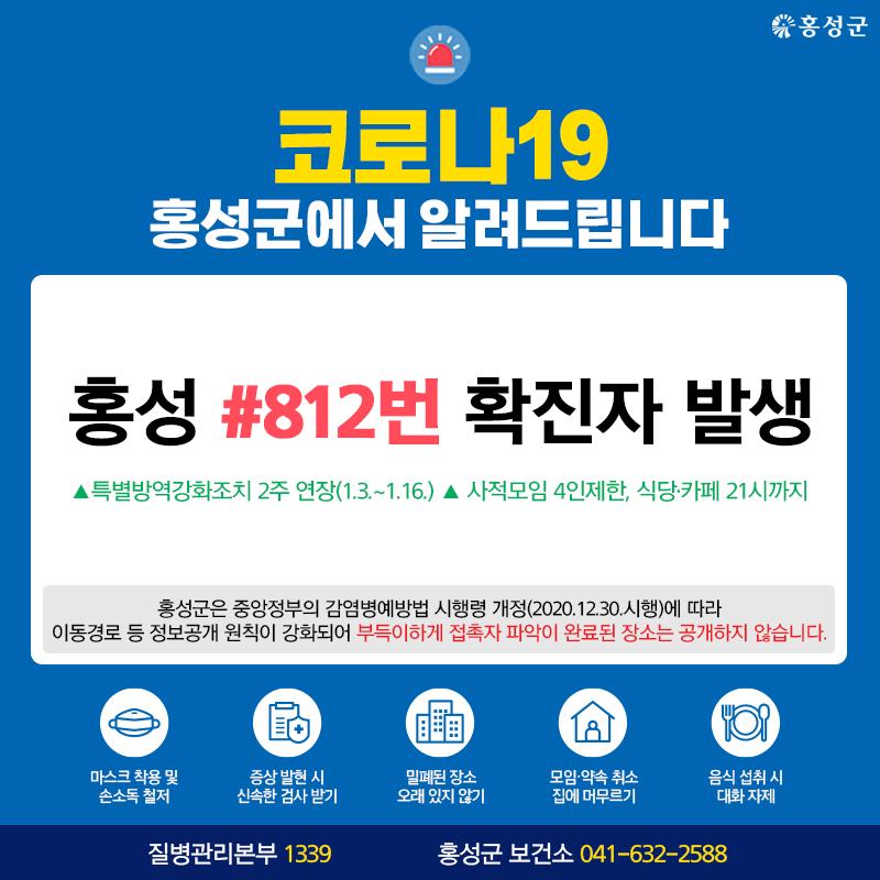 홍성 #812번 확진자 발생 확진자 접촉 1명 특별방역강화조치 2주 연장(1.3.~1.16.) 사적모임 4인제한, 식당·카페 21시까지 Tag #홍성군 #코로나19 #확진자 #발생 저작권자 © 홍주일보 무단전재 및 재배포 금지 한기원 기자 다른기사 보기 페이스북 카카오톡 URL복사 기사공유하기