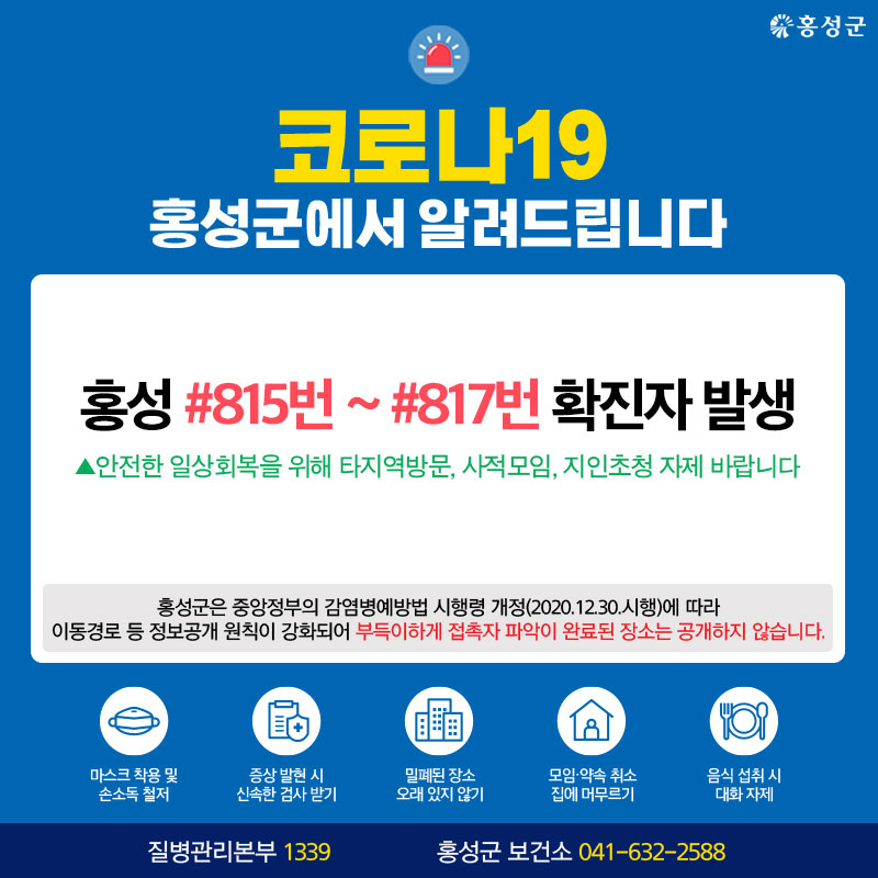 홍성 #815 - #817번 확진자 발생