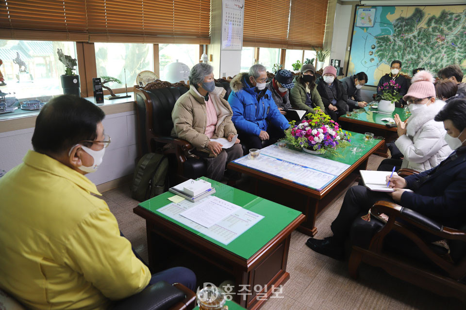 장곡 대중골프장과 관련해 옥계2구마을(이장 강영한)·상송1구마을(이장 곽현정) 주민들 10여 명이 지난 6일 김석환 군수를 만나 골프장 사업 추진에 대한 주민들의 불안과 반대 이유 등을 전달했다.<사진>