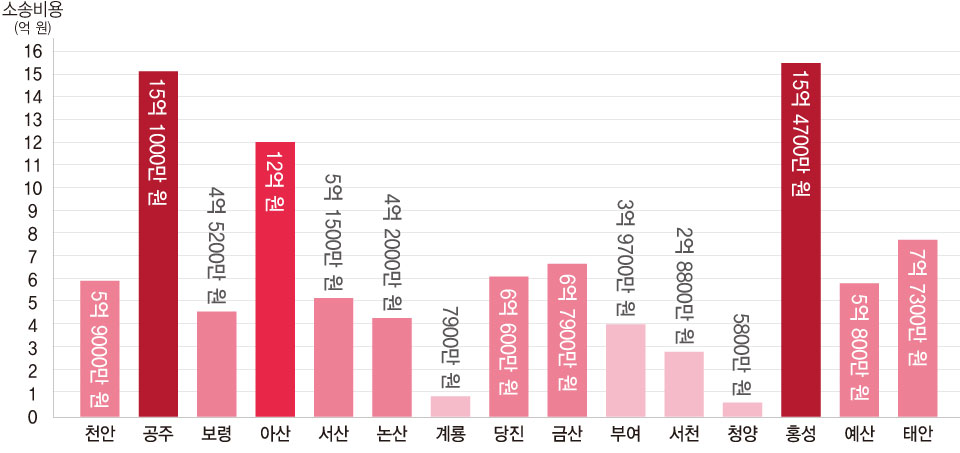소송비용 15개 시·군 중 1위… 청양보다 27배 높아