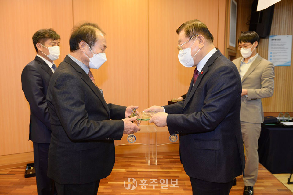 황규진 구항농협 조합장은 지난해 12월 31일 군청에서 홍성한우와 홍성한돈의 지역 브랜드 가치향상에 기여한 공으로 ‘홍성을 빛낸 홍성인상’을 수상했다.