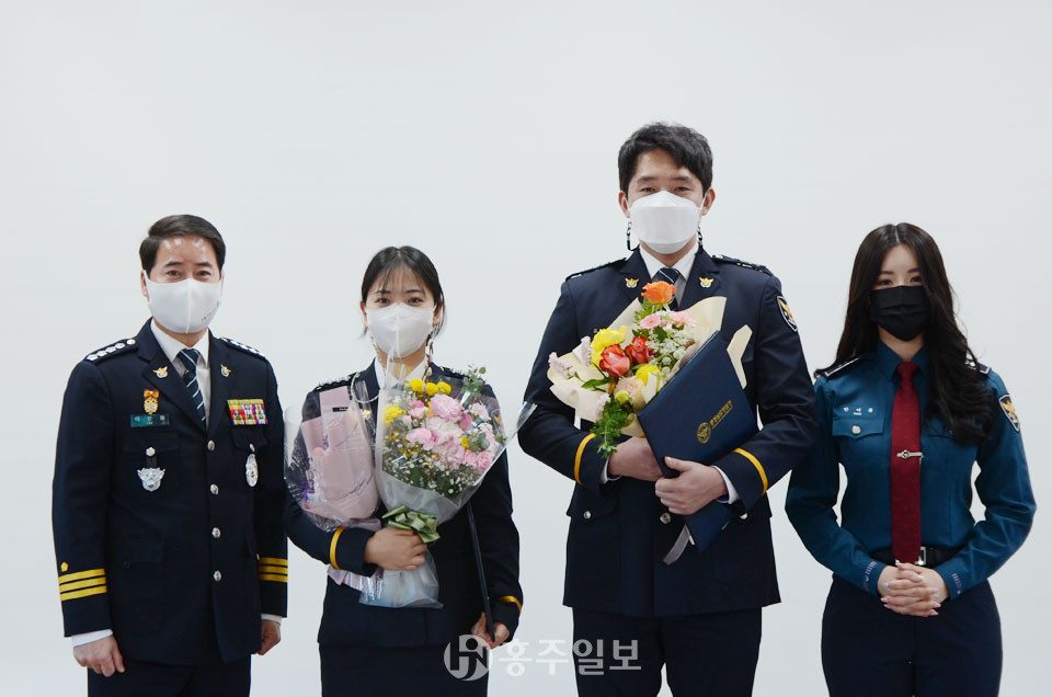 홍성경찰서(서장 이만형)는 지난해 12월 31일 홍성경찰서 대회의실에서 경찰서 홍보대사 가수 한여름 등이 참석한 가운데 승진 임용식을 개최했다.<사진> 이번 행사에는 8명의 경감 임용장 수여와 김선재·조예리 경장의 유공 특별 승진이 실시됐다.