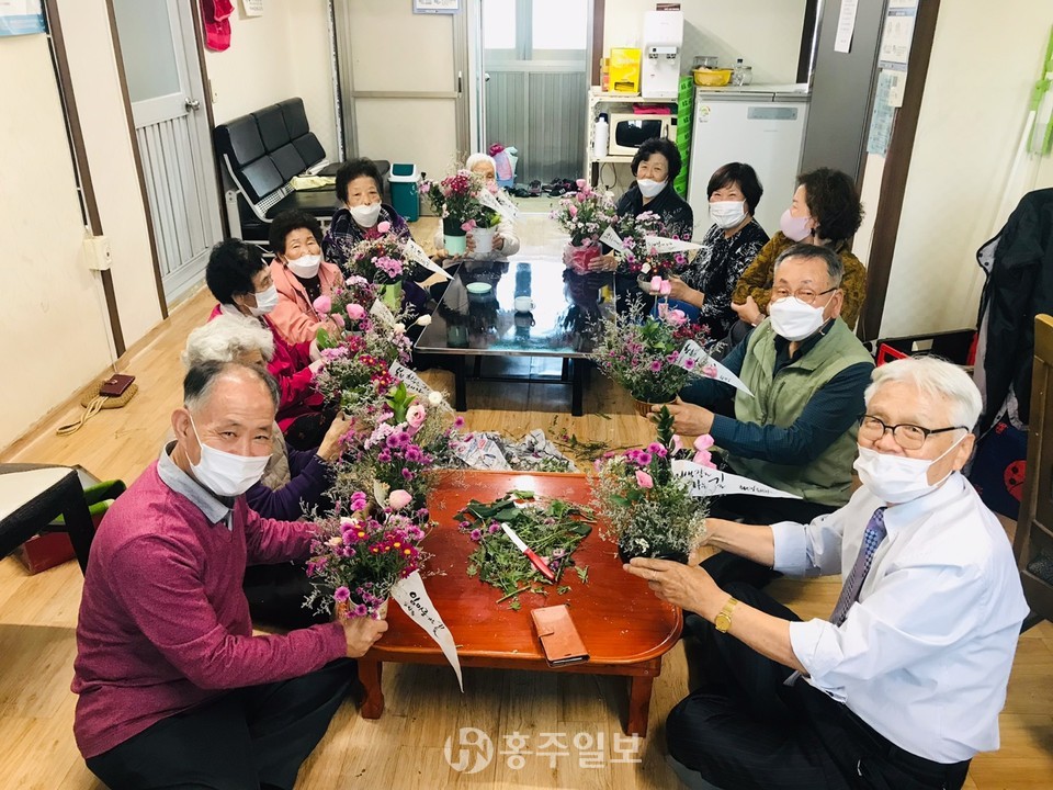 경로당 프로그램은 총 12종으로 기존 진행 중이던 △한글·한문교실 △건강체조교실 △노래교실 △사물놀이교실 △수지침교육 △원예 만들기<사진> △노인인식개선교육 △이혈요법 △이미용교실 △기초건강체크(의료원연계) 10종의 프로그램과 올해 새로 추가된 △보드게임 △모션테이핑 2종 프로그램이 있다.