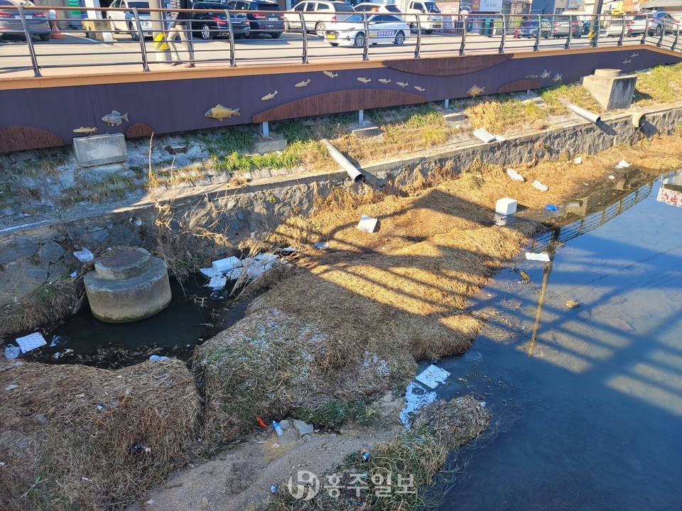 지난 18일 홍성천 하상주차장 부근에서 무단으로 버려진 대량의 쓰레기가 발견됐다. 과일이 담겨 있던 것으로 추정되는 스티로폼 재질의 박스와 각종 포장재, 비닐들이 흩뿌려져 눈살을 찌푸리게 한다. 건강한 생태계가 유지될 수 있도록 생태 하천 복원 노력이 계속되고 있고, 많은 사람들이 합심해 환경 정화활동을 하고 있지만 누군가는 쓰레기와 함께 양심도 버렸다.