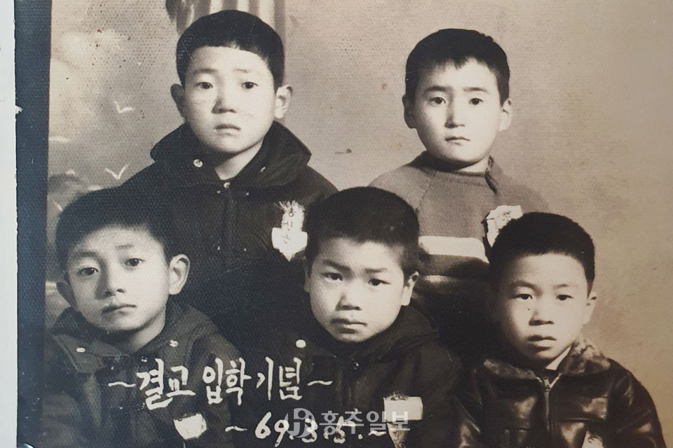 “뒷줄 오른쪽이 나야. 결성초교 입학 기념으로 4촌들·6촌들 해서 사진관에서 사진을 찍었지.”