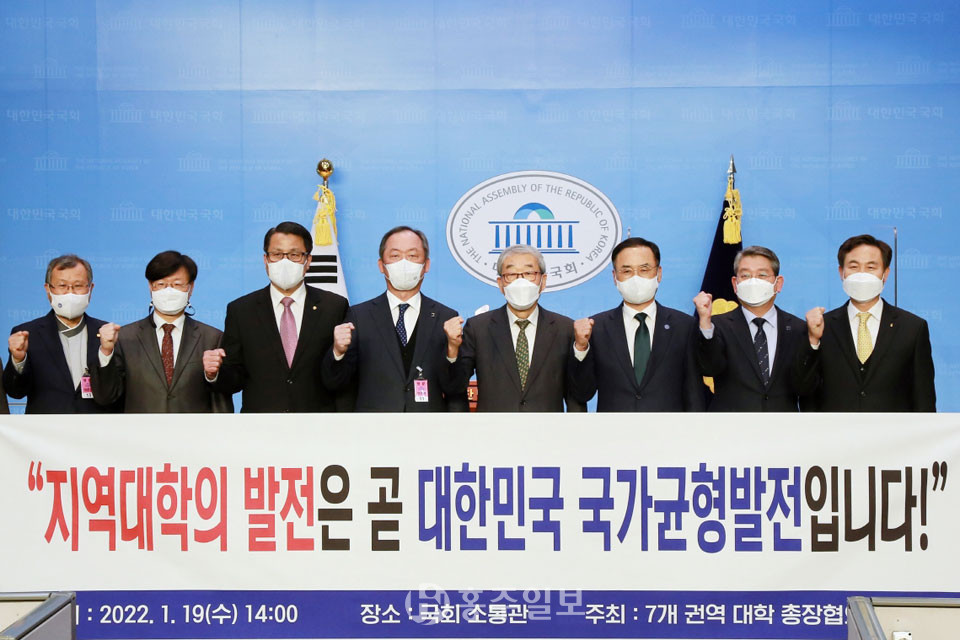 비수도권 ‘7개 권역 대학 총장협의회 연합’이 지난 19일 대한민국의 지속가능한 발전을 위한 정부 차원의 지역대학정책을 촉구하는 ‘정책청원문’을 발표했다.<사진>