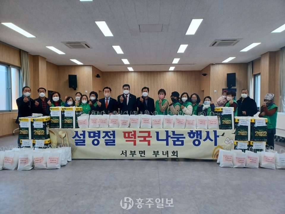 서부면 새마을부녀회(부녀회장 엄현숙)는 지난달 27일 저소득층 등 어려운 이웃들을 위해 사랑의 떡국 나눔 행사를 가졌다.<사진> 이날 행사에서는 부녀회 회원 20여 명이 이웃들을 직접 방문해 떡국을 전달하고 안부 인사를 전했다.