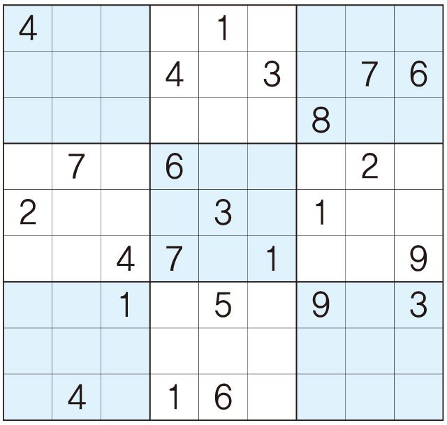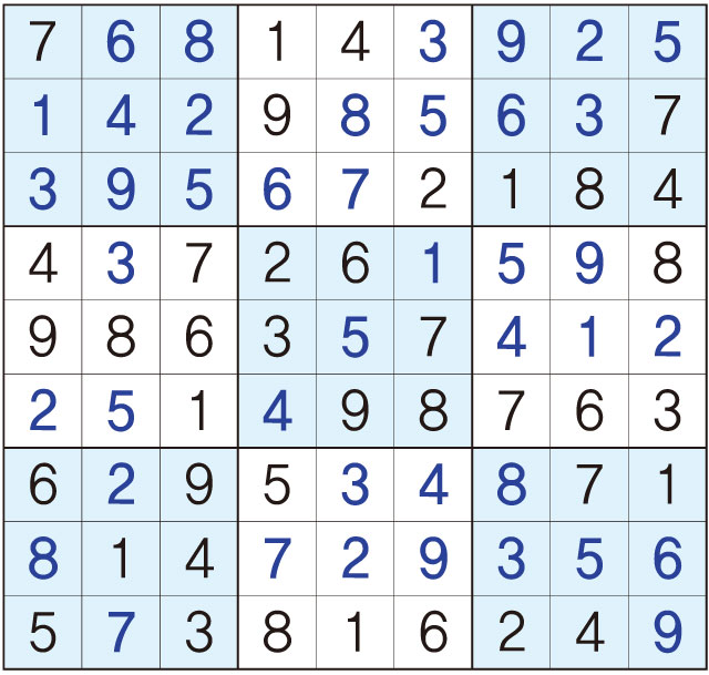 3. 큰 정사각형(9x9) 안에 있는 작은 정사각형(3x3) 안에는 숫자 1~9가 각 한 번씩 들어간다.