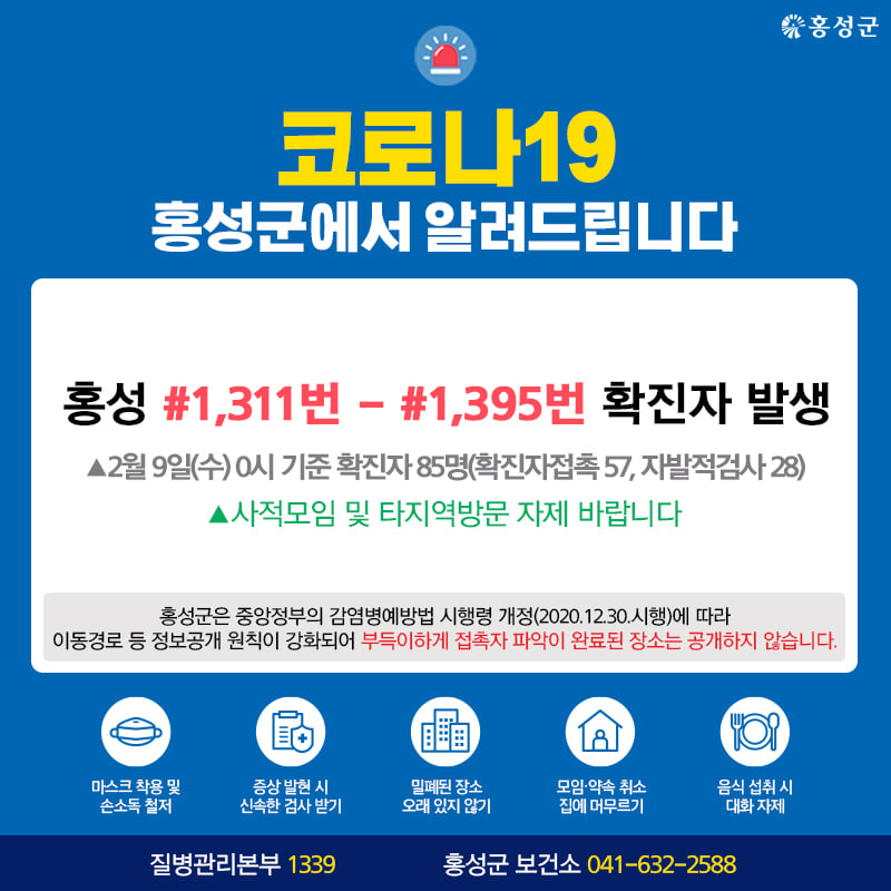 홍성 #1,311번 ~ 1,395번 확진자 발생