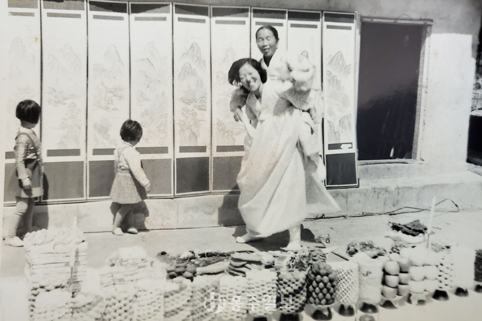 “시어머니를 업고 사진을 찍으셨네요? 사진만 봐도 잔치 분위기가 느껴지는 것 같아요.”