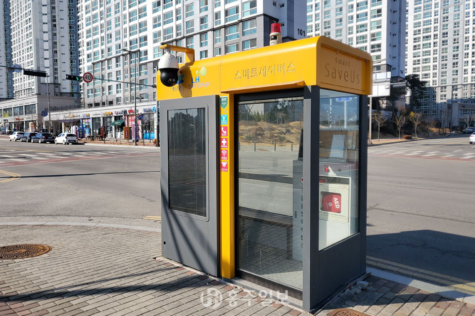 노란색 지붕과 박스 모양을 가진 ‘스마트 세이버스(Saveus)’는 여성이나 노약자 등이 응급·재난상황에 대처할 수 있게 만들어진 시설로 부스 내 비상버튼을 누르면 강화문이 닫혀 밖에서는 열리지 않도록 설계돼있다.
