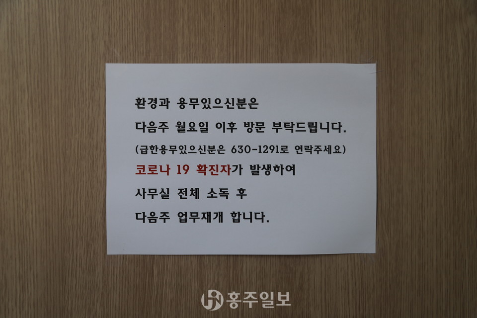 지난해 12월 민원지적과에서 2명의 코로나19 확진이 나온 이래 10일 홍성군청에서 2명의 확진자가 나왔다.