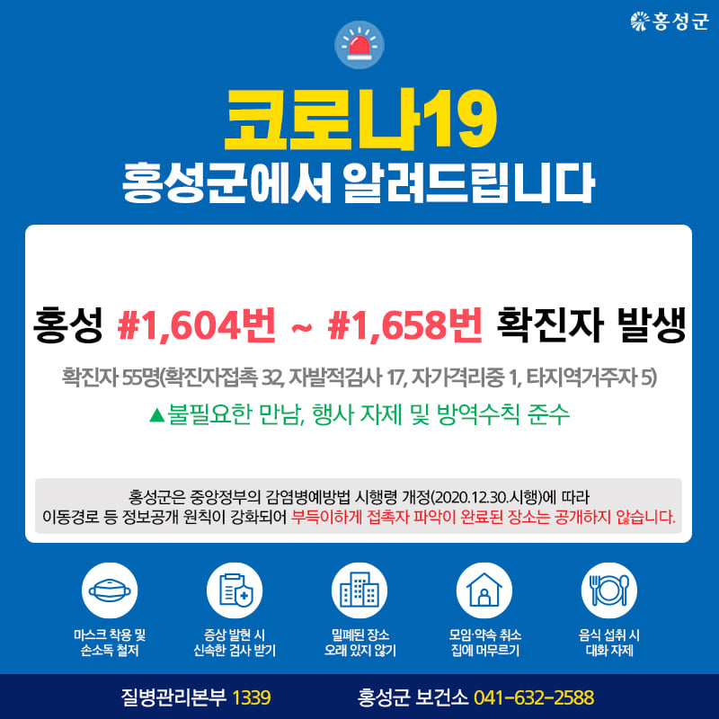 홍성 #1,604번 ~ #1,658번 확진자 발생