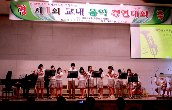 지난 15일 서해삼육고등학교(교장 이봉길)에서 제1회 음악 경연 대회가 개최됐다. 총 22팀의 참가자가 출전해 성악, 기악 등 여러 분야에서 다재다능한 끼를 표출했다. 학생 뿐 아니라 음악적 재능을 가진 교사들도 특별 무대를 마련해 학생들로부터 큰 호응을 얻었다. 특히 이번 대회는 개최 과정 동안 학교 측의 도움 없이 학생회 스스로의 힘으로 행사를 계획하고 추진한 것이라 더욱 의의가 있었다는 평가를 받았다.