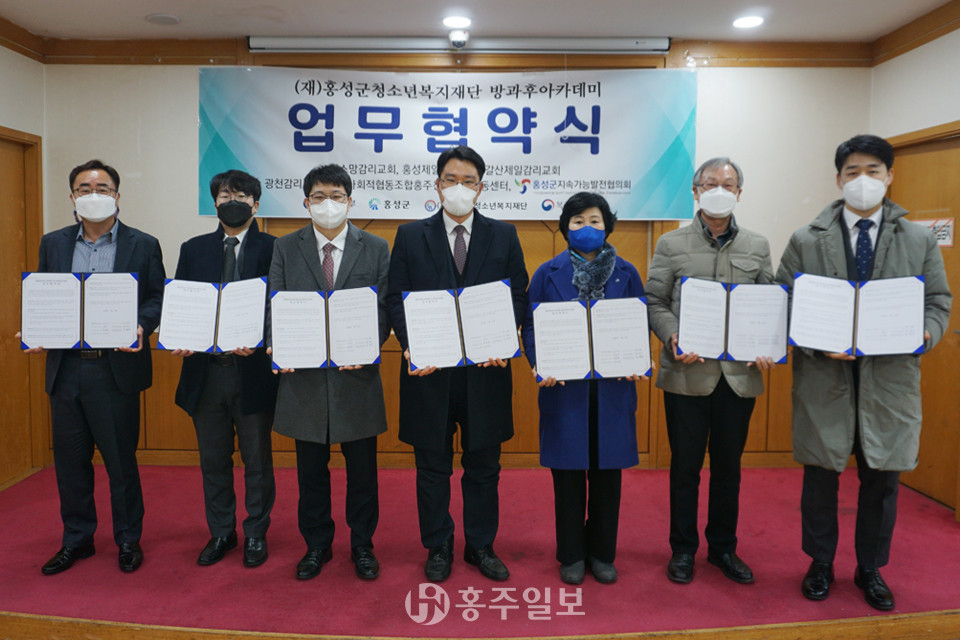 (재)홍성군청소년복지재단(이사장 길영식 부군수) 방과후아카데미는 지난 15일 청소년수련관 다목적홀에서 관내 6개 기관·단체와 상호간 청소년 활동에 대한 협조와 지원 등을 주요 골자로 한 업무협약식을 진행했다.