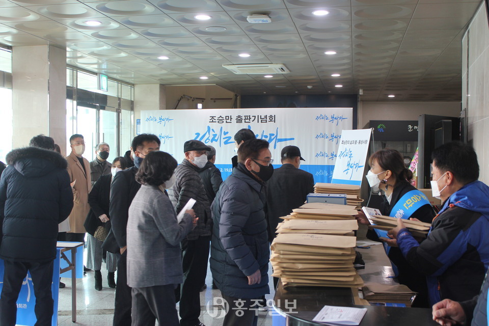 조승만 충남도의원이 지난 19일 홍주문화회관에서 ‘정치는 봉사다’ 출판기념회를 열었다.<사진> 이날 출판기념회에는 조인복 전 홍성교육지원청 교육장, 김명선 충남도의회 의장, 조길연 충남도의회 부의장, 김동일·황영란 충남도의원, 김기철·노운규·문병오·윤용관·이병희 홍성군의원, 김학민 더불어민주당 충남도당 홍성·예산 지역위원장 등이 참석했다.