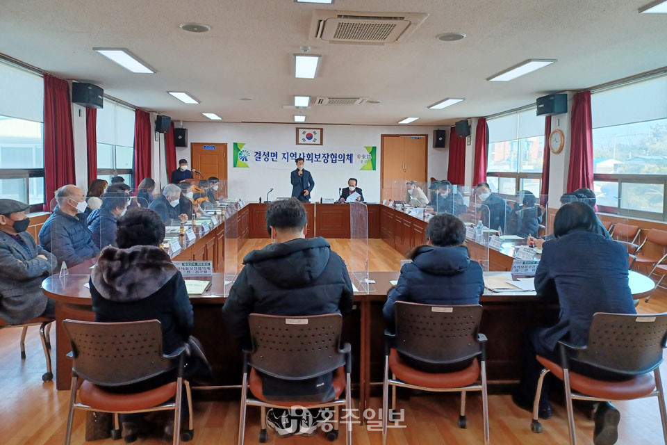 결성면지역사회보장협의체(공공위원장 황선돈·민간위원장 고중섭)가 지난 17일 협의체 위원 27명이 참석한 가운데 결성면행정복지센터 회의실에서 2022년 새해 첫 회의를 열고 희망찬 출발을 알렸다.<사진>