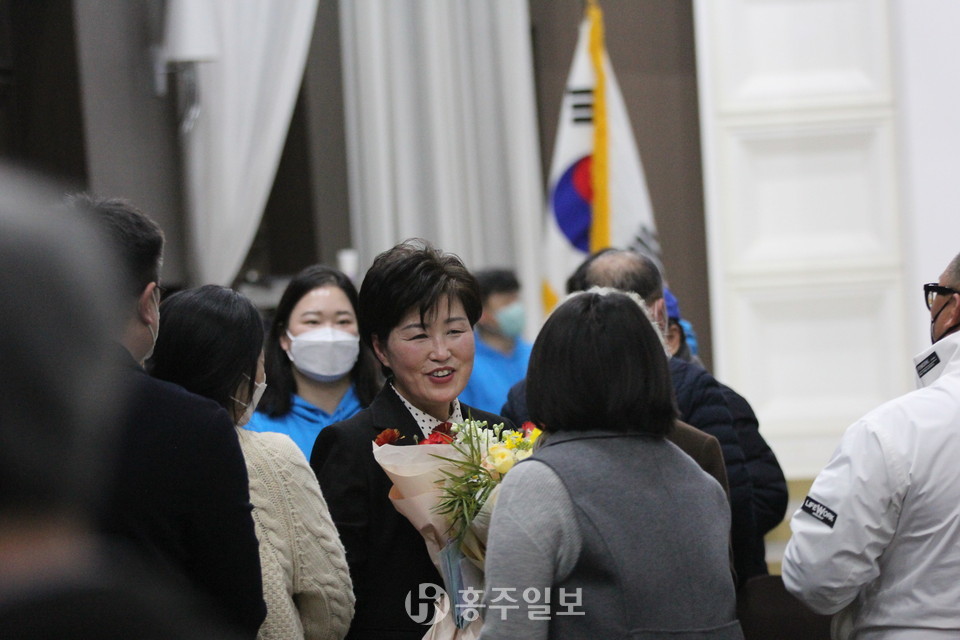 조성미 풀무소비자생활협동조합 이사장이 지난 25일 오후 5시 J컨벤션웨딩에서 인터뷰 에세이 ‘조성미가 만난 사람들’ 출판기념회를 열었다.<사진>