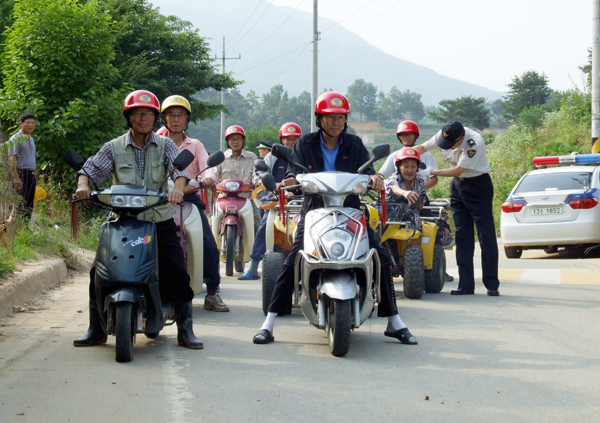 홍성경찰서는 지난 14일 홍북면 대인리 21번 국도 인근 마을에서 65세 이상 노인 및 장애인들에게 가볍고 세련된 디자인의 신형 안전모 25개를 나눠주고 교통법규 준수 및 교통사고 예방 캠페인을 실시했다.