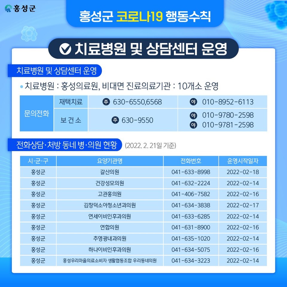 홍성의료원, 비대면 진료의료기관: 10개소 운영