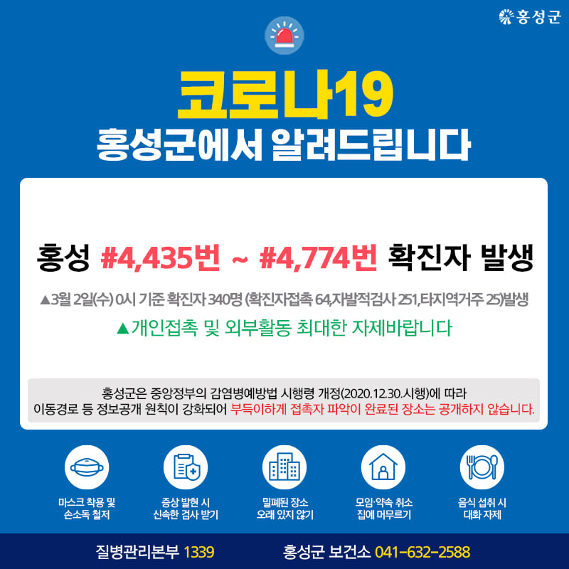 홍성 #4,435번 ~ #4,774번 확진자 발생