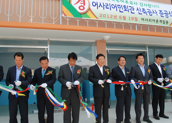 한국농어촌공사 홍성지사(지사장 진광재)는 지난 19일 김석환 홍성군수, 김원진 홍성군의회 의장, 방한오 한국농어촌공사 지역개발이사를 비롯한 대내·외 각 기관장들과 어사리 주민 150여명이 참석한 가운데 어사리 어민회관 준공식을 가졌다.
