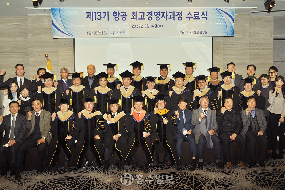한서대학교(총장 함기선)와 한국교통연구원(원장 오재학)이 공동으로 운영하는 ‘항공최고경영자과정(항공 AMP) 제13기 수료식’이 지난 16일 퍼시픽호텔 남산홀에서 개최됐다.<사진>