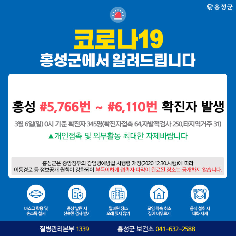 홍성 #5,766번 ~ #6,110번 확진자 발생