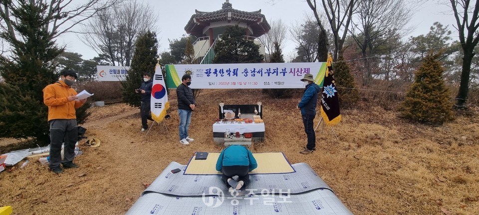 (사)한국산악회 충남서부지부(지부장 김동규, 이하 충남서부지부)는 지난 1일 백월산 정상에서 시산제를 개최했다.<사진>