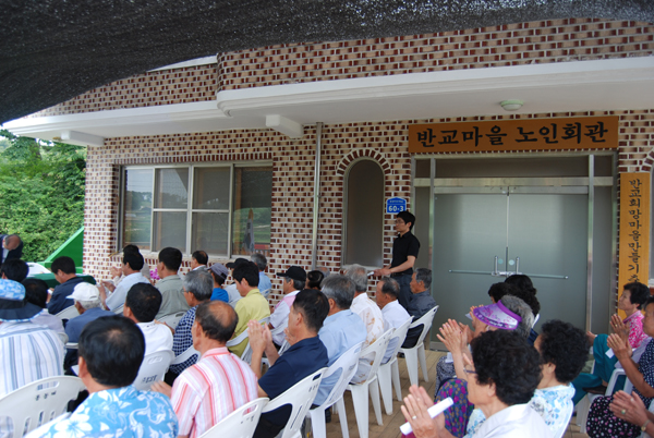 홍동면 신기리 반교마을 어르신들이 경사가 났다. 지난 15일 반교마을에서는 살기좋은 반교 희망마을 만들기 추진 주민결의대회 및 추진위원회 현판식과 함께 아름다운 경노당 준공식을 가졌다. 이날 행사에는 박송규 추진본부장의 반교희망마을만들기 추진 주민결의문 낭독과 전병환 거북이바을 추진위원장 성공사례발표, 한국농어촌공사 이승재 팀장의 농촌발전계획, 임포마스타 컨설팅 박한수 팀장의 희망마을만들기 사업 설명이 진행됐다.