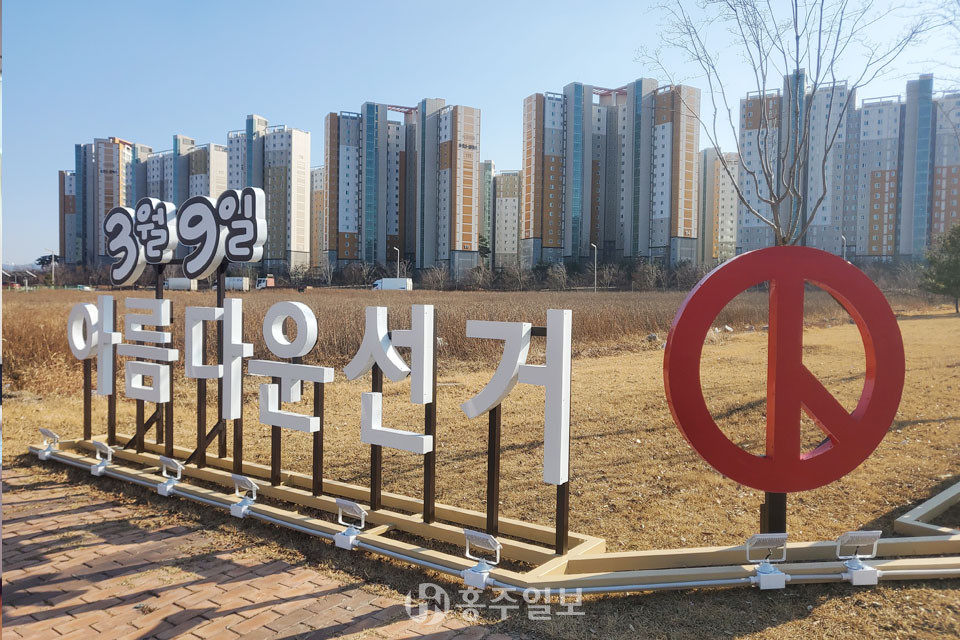 사진은 홍북읍 적십자사 사거리 인근에 제20대 대통령선거를 앞두고 설치된 ‘아름다운 선거’ 홍보 조형물.