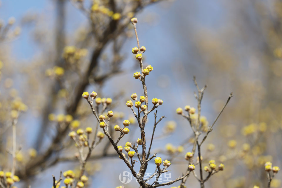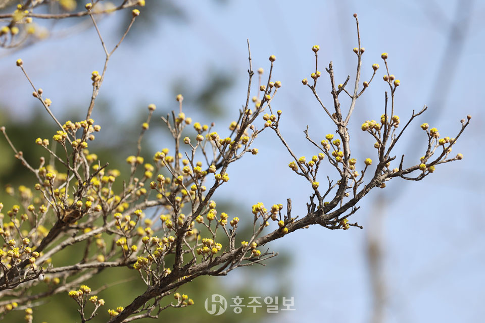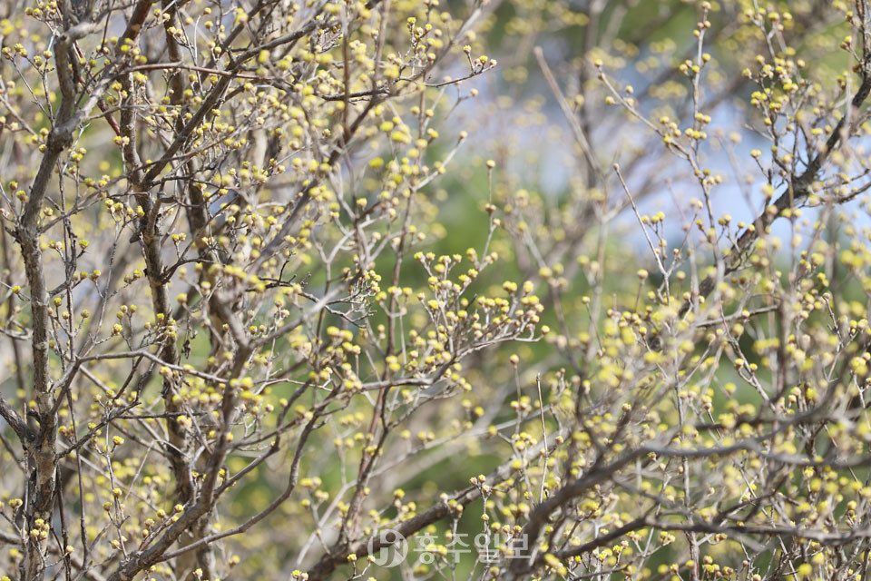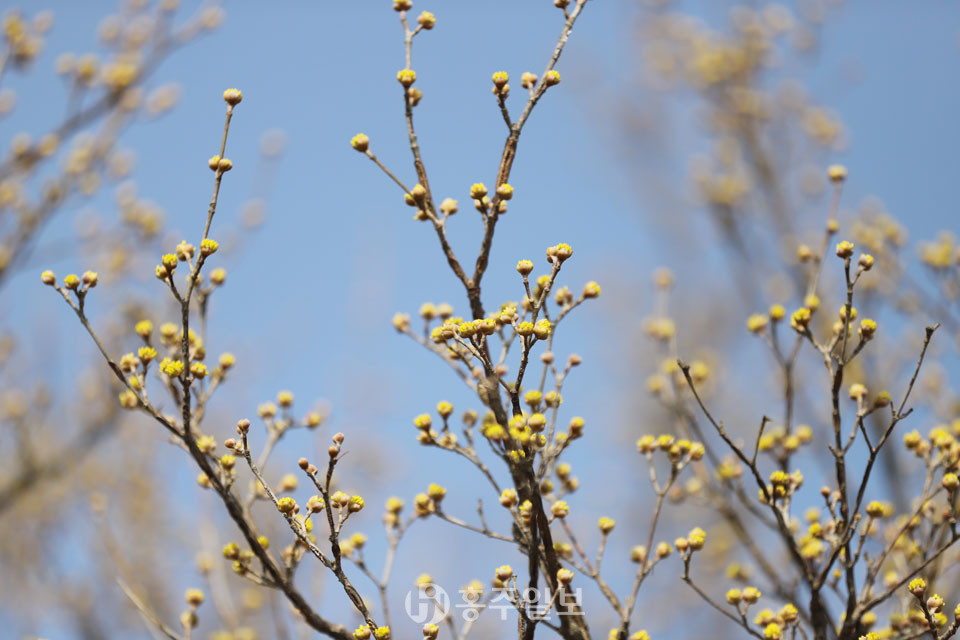 지난해 2월 말 꽃피웠던 산수유가 올해는 3월 중순에 들어서도 꽃을 피우지 않았다. 농민들은 봄 가뭄 탓에 꽃을 피우지 못하고 있는 것이라고 귀띔했다. 그런데 지난 주말 전국적으로 봄비가 내렸고, 홍성군 전역을 촉촉하게 적신 봄비는 봄의 시작을 재촉했다. 봄비가 그치고 화창해진 지난 15일 농민들의 말을 증명이나 하듯 홍양저수지변 산수유가 꽃을 피우기 시작했다. 홍양저수지를 산책하던 군민들은 꽃잎을 조금씩 내보이기 시작한 노란 봄을 눈치 채고 함께 걷는 지인들에게 한 마디 한다. “봄이 왔네.”
