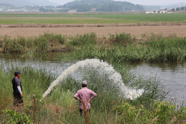 덕우영농법인 조광성 대표는 5대의 살수차를 동원해 결성면과 서부면 담수지에 22일 종일 물을 대는 작업을 지휘했으며, 이번 물대기로 결성면 간척지 내 농경지의 갈수현상이 다소나마 해결됐다.