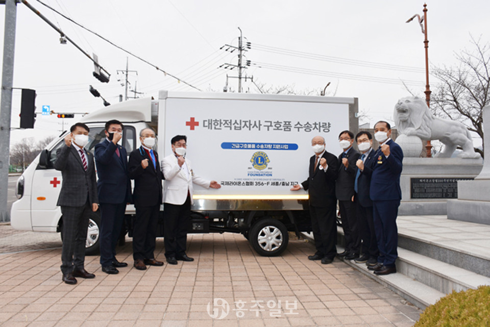 국제라이온스협회 356-F(세종·충남)지구(총재 장보선)는 지난 11일 긴급구호 대상자들에게 필요물품을 수송하는 차량 1대를 대한적십자사 충청남도지사(회장 유창기)에 전달했다. <사진>