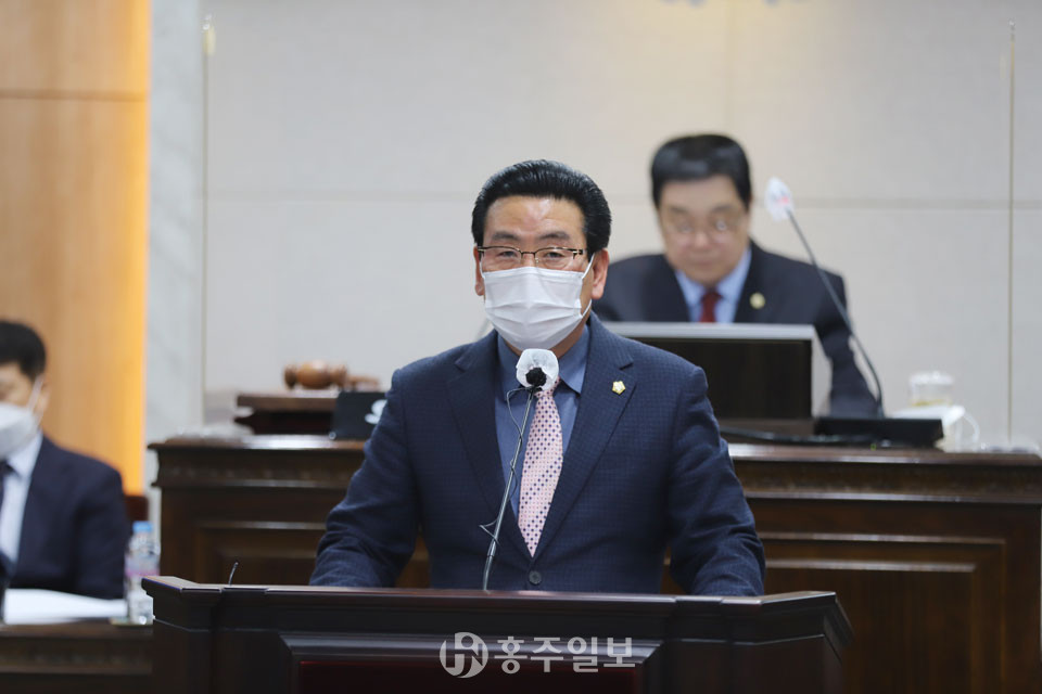 장재석 홍성군의회 의원이 지난 18일 제284회 홍성군의회 임시회 제2차 본회의에서 ‘아파트 붕괴사고 예방 등 군민의 안전한 삶을 위하여’라는 제목으로 5분 자유발언을 진행했다.<사진>