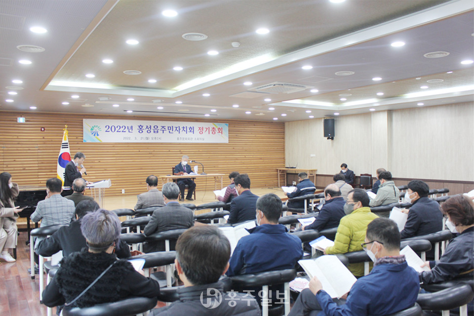 홍성읍 주민자치회(회장 김종만)가 지난 21일 홍주문화회관 소회의실에서 2022년 정기총회를 개최했다.<사진>