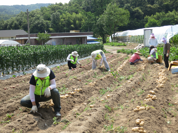 청운대학교(총장 이상렬) 사회봉사단과 충청남도광역정신보건센터(센터장 최상섭)는 20여명의 봉사자들과 지난 25일부터 26일까지 1박2일로 구항면 내현리 화산마을을 방문하여 농촌마을 봉사활동을 펼쳤다. 이번 농촌마을 일손돕기는 취약농가를 중심으로 부족한 일손을 도우며 감자수확 및 고추밭 돌보기 등을 실시했다. 또한 보여주기식 농촌일손 돕기가 아닌 실질적으로 도움이 되는 꼭 필요한 일손돕기가 될 수 있도록 인원도 20여명으로 구성하였으며 식사까지 자체적으로 준비해서 농가에 부담을 주지 않았다.