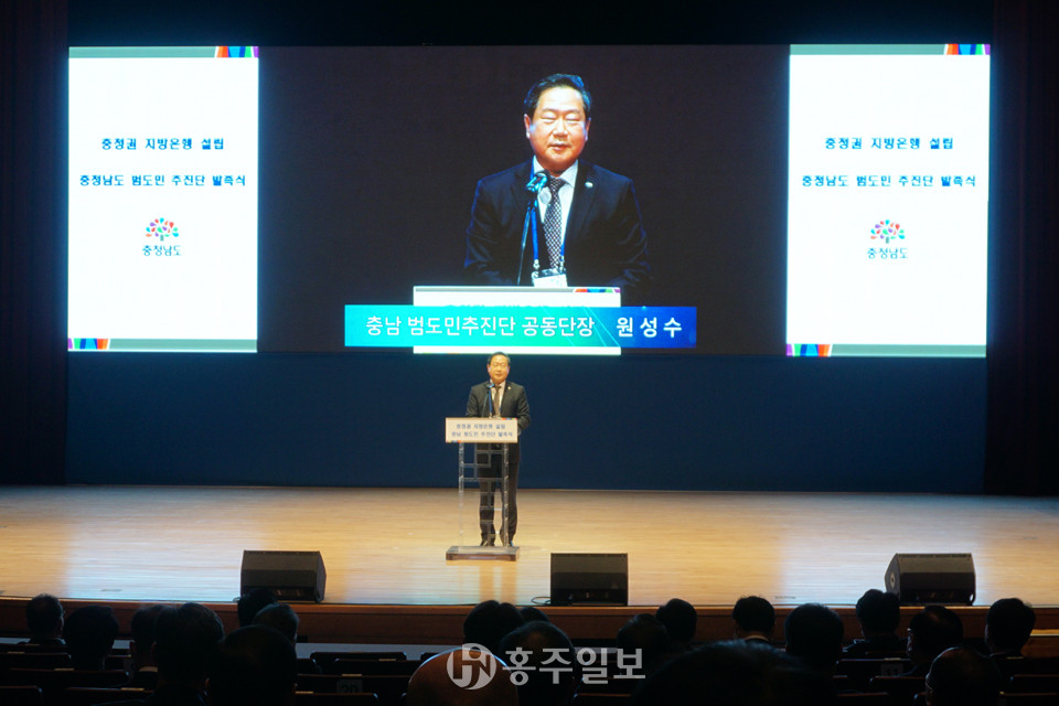 범도민추진단은 도내 경제인단체와 시민사회단체 대표, 대학 총장, 유관 기관·단체 대표, 시군 단위 대표 등 680명과 국회의원, 전현직 금융인 등 20명의 자문단으로 구성했으며, 공동단장은 양 지사와 원성수 공주대 총장이 맡았다.