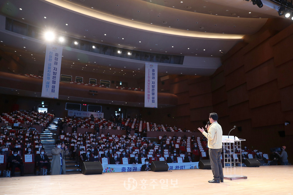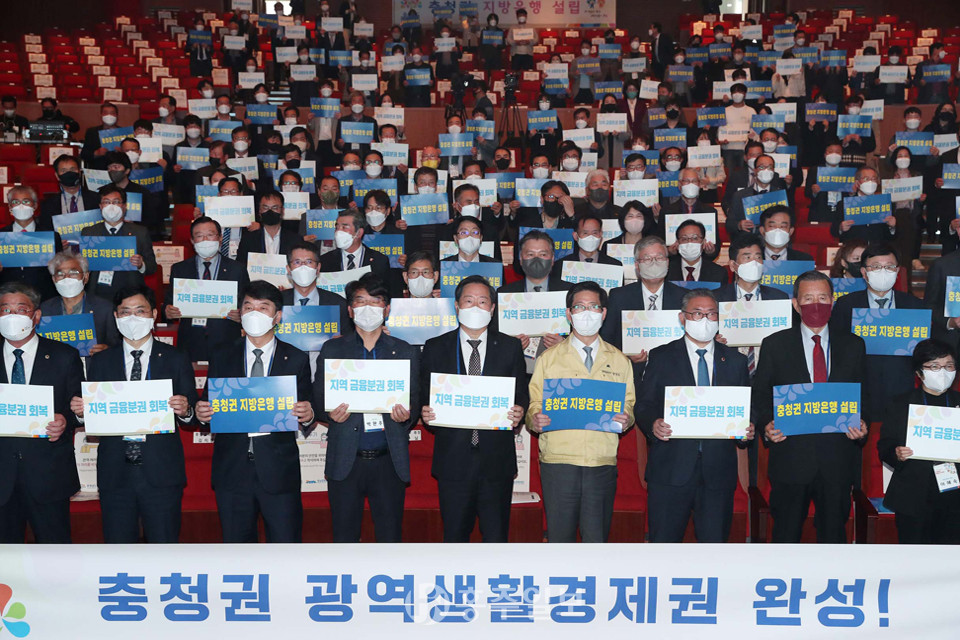 도는 지난 6월 지역 금융 활성화 방안 마련을 위한 전문가 토론회를 통해 충청권 지방은행 설립 추진을 공식화했다. 지난해 12월에는 양 지사와 허태정·이춘희 시장, 이시종 지사가 공동 추진 협약을 맺고, 성공 추진을 약속한 바 있다.