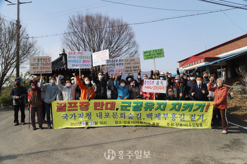 탄원서는 △골프장으로 인한 지하수 고갈 위험성 △홍성군의 유기농 특구 이미지와 맞지 않는 골프장 개발 △탄소 중립 정책에 맞지 않는 골프장 건설 △예정지 주변 지역의 개발 상황과 골프장 조성의 모순 등 총 8가지를 들어 골프장 유치 철회를 주장했다. 이어 지난 27일에는 ‘골프장 반대, 군공유지 지키기-국가지정내포문화숲길, 백제부흥길 걷기’가 진행됐다.
