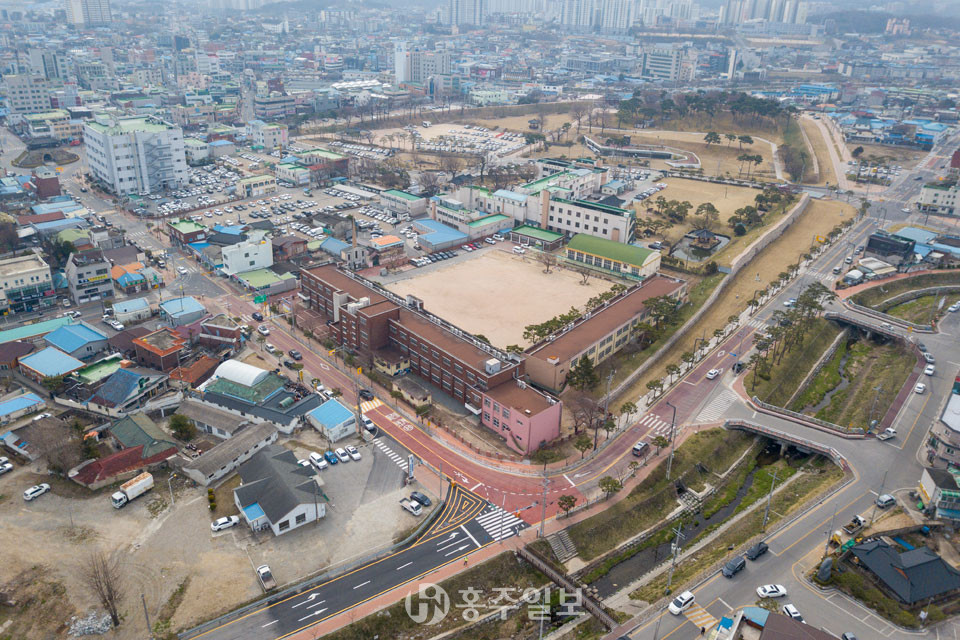 홍성읍 홍주초삼거리 도로복구가 완료돼 4월 1일부터 차량통행을 정상화했다.