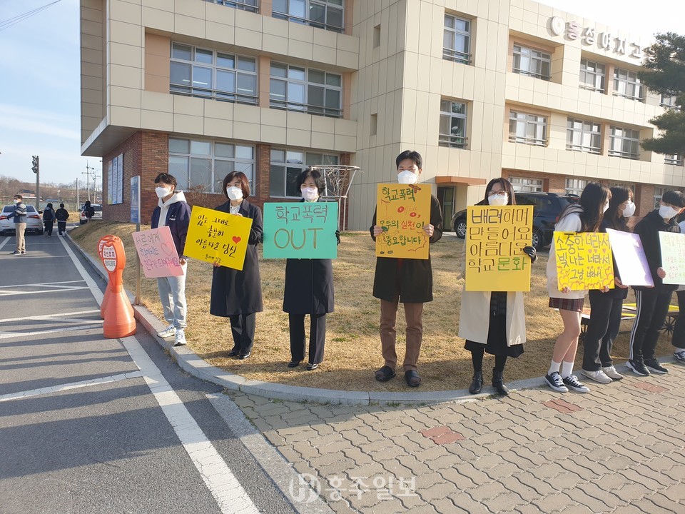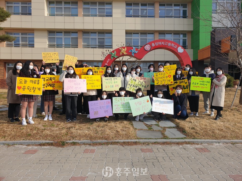 홍성여고 또래상담 동아리 ‘솔리언’과 사회문제 탐구 동아리 ‘캡스’가 공동으로 참가한 이번 캠페인은 학생들이 피켓을 들고 피켓 문구들을 제창하며 재학생들의 새 학기 등굣길을 응원하는 방식으로 진행했다.