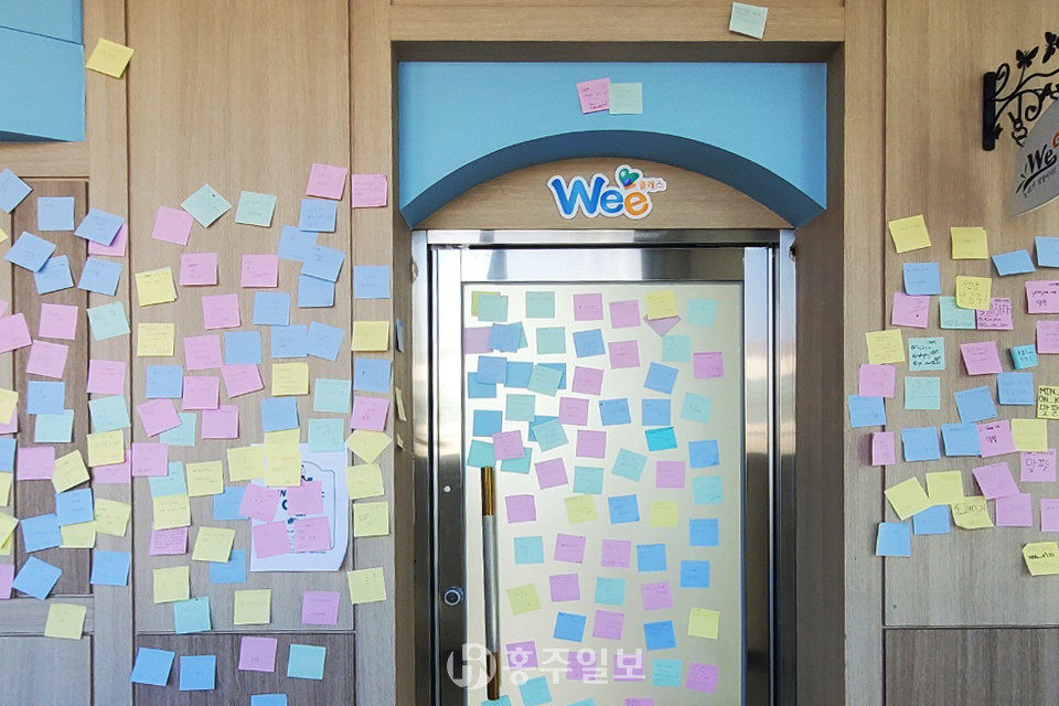 ‘Wee클래스에게 하고 싶은 말’은 자신이 하고 싶은 말을 포스트잇에 적어 Wee클래스실에 붙이는 활동이다. 자신의 고민이나 소망을 숨기지 않고 자랑하는 활동을 함으로써 상담활동에 대한 인식을 개선할 수 있으며, 가장 공통적인 내용은 향후 진행될 집단상담 주제에 활용될 예정이다.
