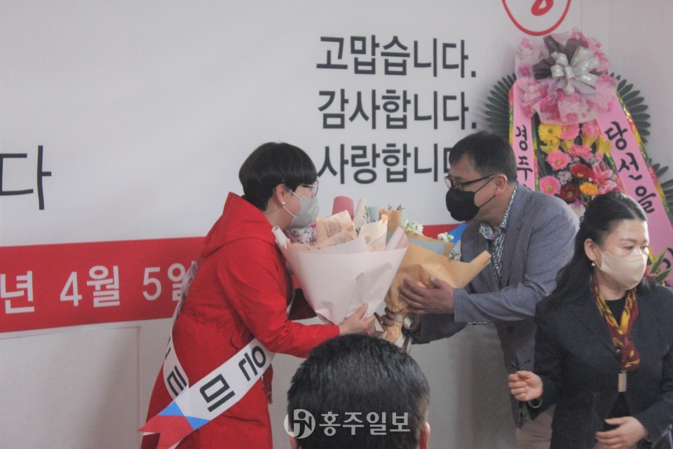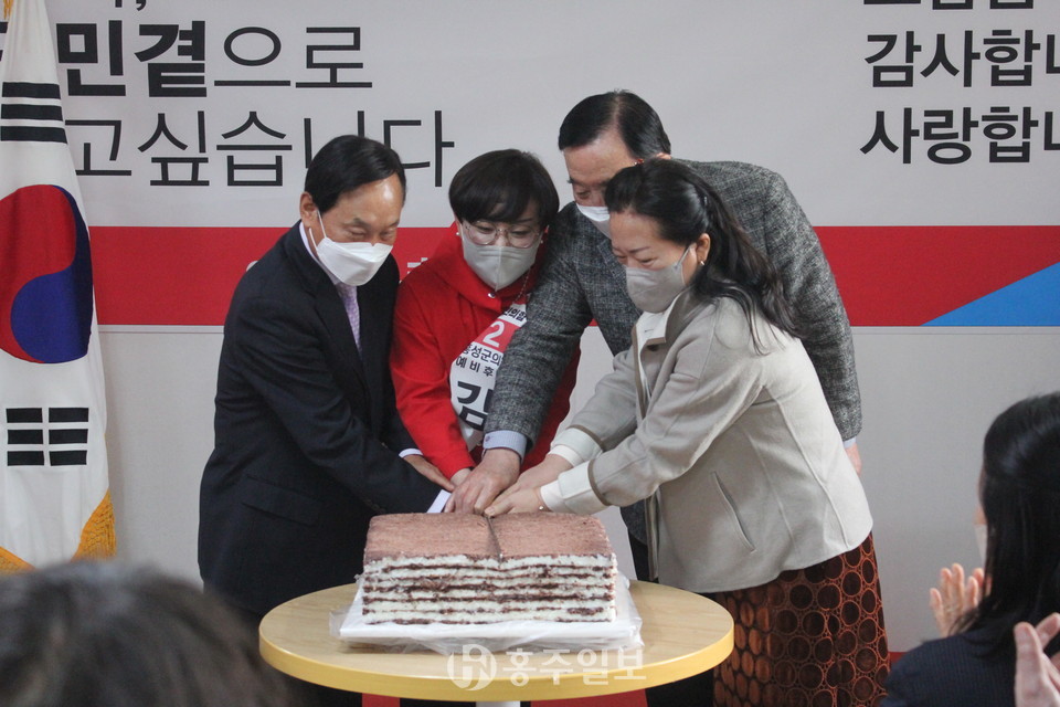 이어진 격려사에서 이선균 홍성군의회 의장은 “김 후보는 서민생활에 밀착한 정책을 발굴하며 굉장히 많은 조례를 발의했다”며 지지를 보냈다.