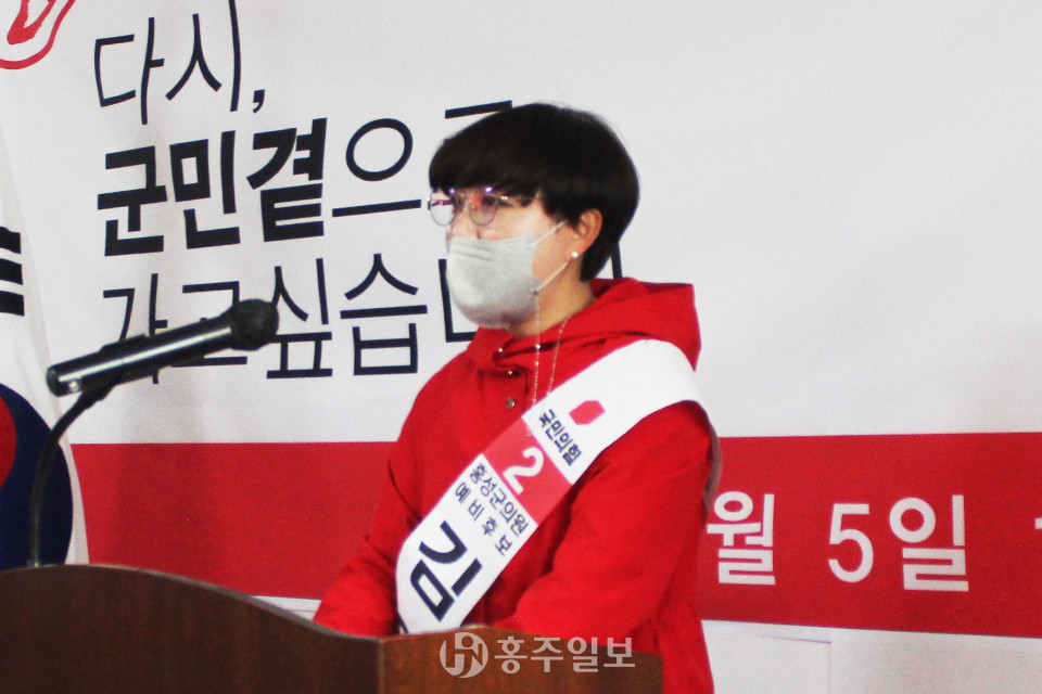 김은미 예비후보는 인사말을 통해 “지난 4년간 비례대표와 초선의원이라는 한계를 넘어 주민들과 긴밀히 소통하는 활발한 활동을 전개했다”면서 “지역의 교육가족으로 일했던 경험을 바탕으로 홍성교육의 백년대계를 위한 의정활동을 전개하겠다”고 전했다.