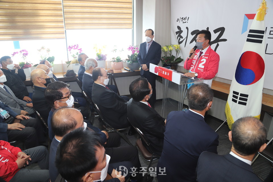 개소식에는 최 예비후보의 지지자들과 국민의힘 관계자들이 선거사무소에 가득 운집해 최 후보에게 힘을 보탰다. 특히 홍문표 국회의원을 비롯해 이승구 예산군의장, 김기영·방한일 충남도의원, 김태금·이상우·전용구·홍원표 군의원 등의 예산군 인사들과 이종화 홍성군수 예비후보, 장재석 부의장, 김덕배·김은미 군의원 등의 홍성군 인사들도 참여해 자리를 빛냈다.