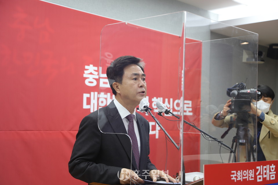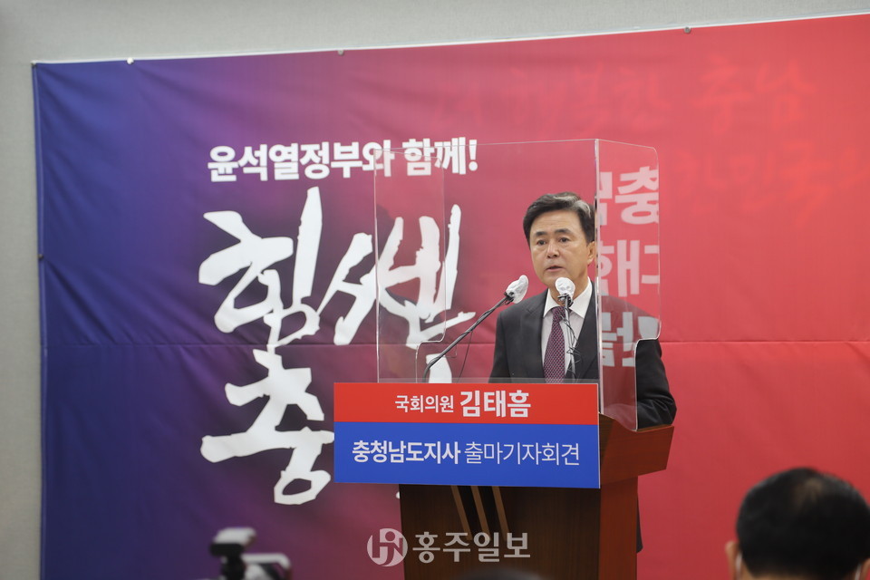 김태흠 국회의원(보령·서천, 국민의힘)이 13일 충남도청 브리핑룸에서 기자회견을 열고 “사생취의(捨生取義)의 각오로 충청남도 도지사 출마를 선언한다”고 밝혔다.