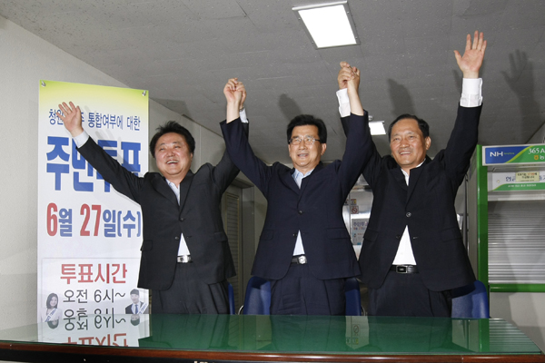 이미 청주시는 주민투표를 하지 않고 지난달 21일 시의회의 만장일치 찬성 의결로 통합의사를 확인했다. 주민투표를 통해 기초자치단체끼리 행정구역을 합친 것은 2004년 주민투표법 제정 이후 처음이다.