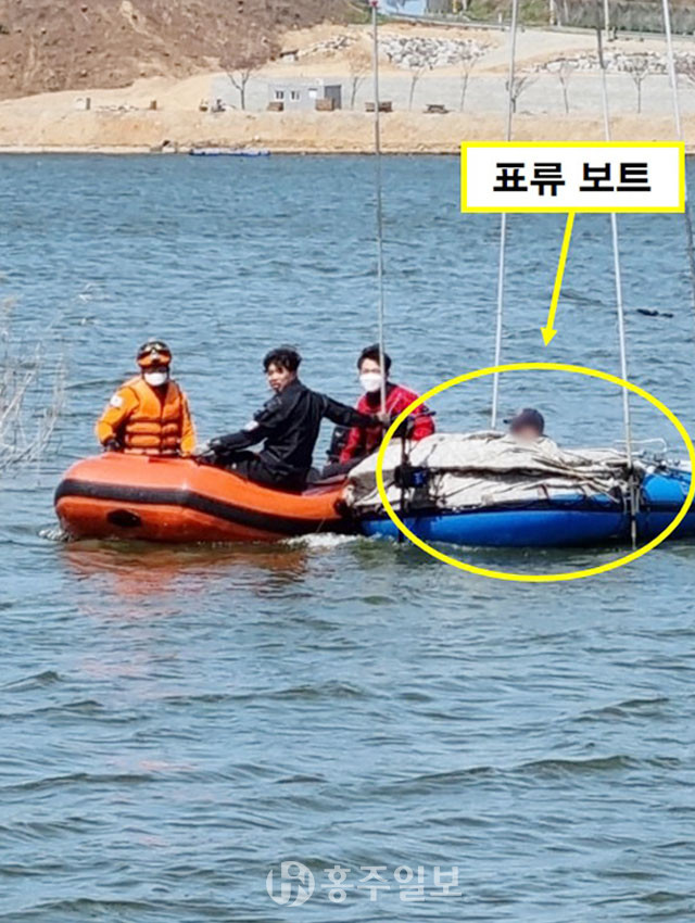 지난 10일 홍성호 일대에서 낚시를 하던 A씨(남·65)가 고무보트 위에서 장시간 표류하는 사건이 발생했다.<사진>